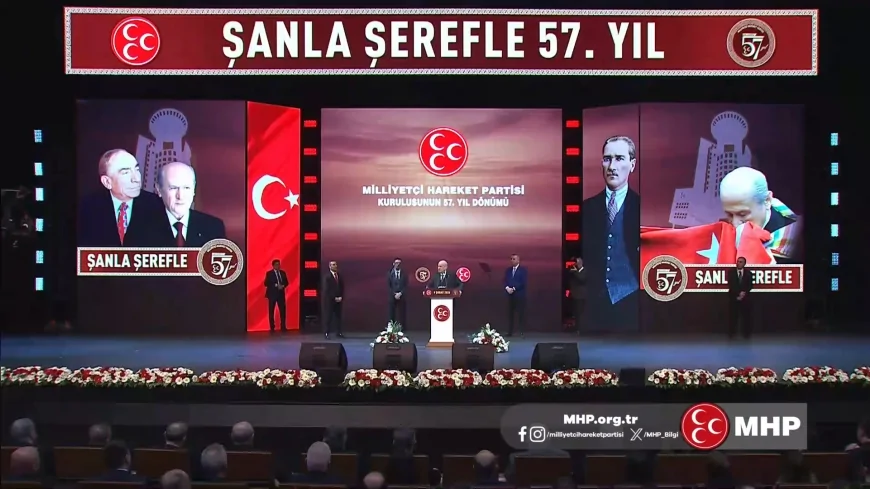 ANKARA – Milliyetçi Hareket Partisi’nin (MHP) kuruluşunun 57. yıl dönümü dolayısıyla 9 Şubat 2026 Pazartesi günü saat 13.00’te Ankara’da ATO Congresium’da “Şanla Şerefle 57. Yıl” programı düzenlendi. Programda MHP Genel Başkanı Devlet Bahçeli kapsamlı bir konuşma yaparken, CUMHA (Cumhur Haber Ajansı) program alanından canlı yayınlar gerçekleştirdi ve parti kurmaylarını konuk aldı.