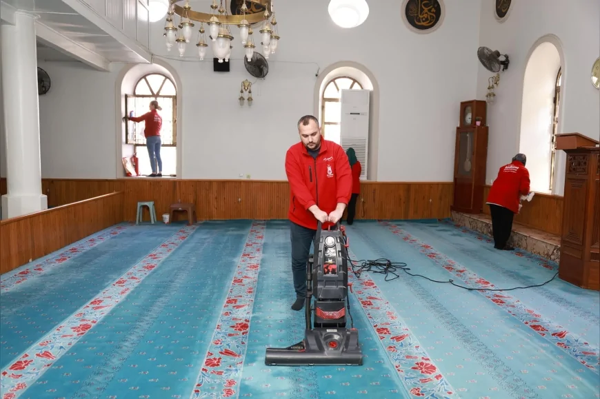 Vatandaşların ibadetlerini daha sağlıklı ve hijyenik ortamlarda gerçekleştirebilmesi amacıyla yürütülen çalışmalarda, cami halıları, abdesthaneler, ayakkabılıklar, avlular ve ortak kullanım alanları düzenli olarak temizlendi.