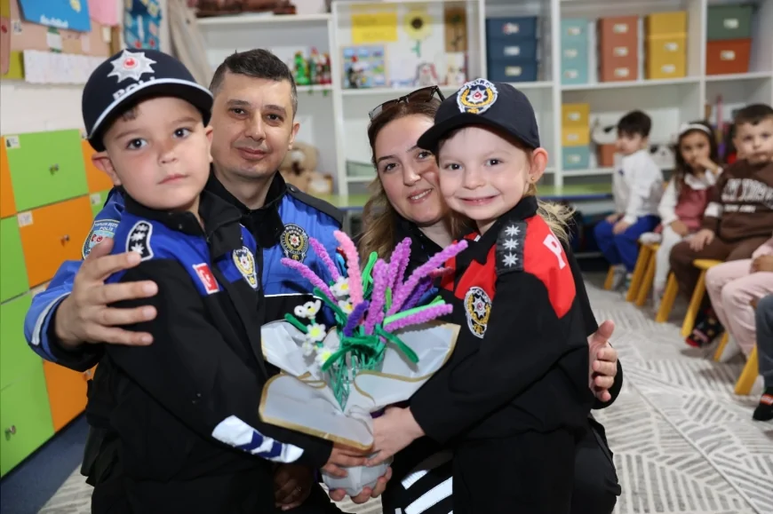Manisa’nın Şehzadeler ilçesinde belediyeye bağlı kreşlerde Polis Haftası kapsamında düzenlenen etkinlikte öğrenciler polisleri ağırladı. Minikler hem eğlendi hem de polislik mesleğine dair bilgi alarak farkındalık kazandı.