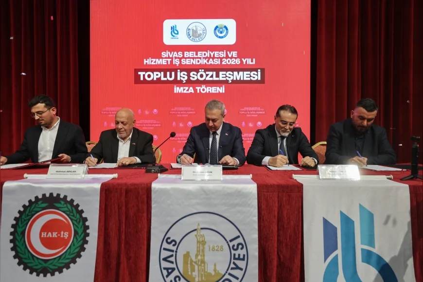 Sivas Belediyesi ile Hizmet-İş Sendikası arasında Özbelsan A.Ş. bünyesinde çalışan işçileri kapsayan 2026 yılı Toplu İş Sözleşmesi, Fidan Yazıcıoğlu Kültür Merkezi’nde düzenlenen törenle imzalandı. Törene Sivas Belediye Başkanı Dr. Adem Uzun, Hak-İş Genel Başkanı Mahmut Arslan, sendika temsilcileri, birim müdürleri ve çok sayıda işçi katıldı.