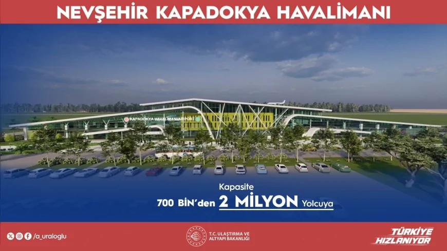 Ulaştırma ve Altyapı Bakanı Abdulkadir Uraloğlu, Nevşehir Kapadokya Havalimanı Yeni Terminal Binası ve Mütemmim Tesisleri Projesi kapsamında birinci etap çalışmalarının tamamlandığını açıkladı. İç ve dış hat giden yolcu salonlarının hizmete alındığını belirten Uraloğlu, yeni terminalin tamamlanmasıyla havalimanının yıllık yolcu kapasitesinin 700 binden 2 milyona çıkarılacağını ve tüm etapların yıl içinde bitirilmesinin planlandığını bildirdi.