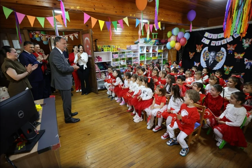 Manisa’da Yunusemre Belediye Başkanı Semih Balaban, 23 Nisan Ulusal Egemenlik ve Çocuk Bayramı öncesinde çocuk kültür ve sanat merkezlerini ziyaret ederek miniklerle buluştu. Balaban, bayramın tarihsel önemine dikkat çekerken çocuklara yönelik hizmetleri ve okul güvenliği konusundaki hassasiyetlerini de paylaştı.